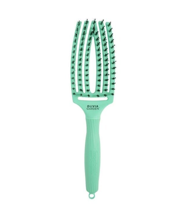 De fingerbrush borstel is goed voor het ontwarren en stylen van het haar, super snel drogen, masseren en dagelijks borstelen. De Medium maat is geschikt voor alle haartypes en vooral voor haar met een normale dikte en medium tot halflange lengte. Het ergonomische handvat is licht en ideaal voor een ontspannen styling. De gebogen peddel met zachte balpunttips omhelst de hoofdhuid en de grote luchtgaten voorkomen dat het haar oververhit en uitgedroogd raakt. De borstel verspreidt de natuurlijke oliën van de hoofdhuid door het haar, voor een gezond en glanzend resultaat. Het verdeelpunt op het einde van het handvat is perfect om het haar te verdelen in secties. Met de Olivia Garden Fingerbrush kam je het haar pijnloos en zonder breuk. De populaire borstel ontwart het haar snel en gemakkelijk en is geschikt voor de haartypes.