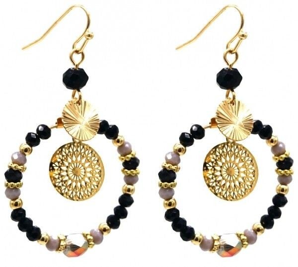 Oorbellen glass beads zwart